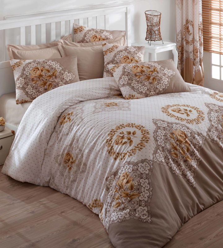 Bavlněné povlečení Renforcé s motivem romantických růží na hnědém pozadí nabízí jemný, ale zároveň výrazný design, který vtiskne ložnici nádech elegance a ženskosti. Květinový vzor na jedné straně působí něžně a dekorativně, zatímco hnědý podklad vytváří teplý a uklidňující rámec pro relaxaci. Celkový dojem je harmonický a sofistikovaný, vhodný jak pro klasické, tak moderní interiéry.