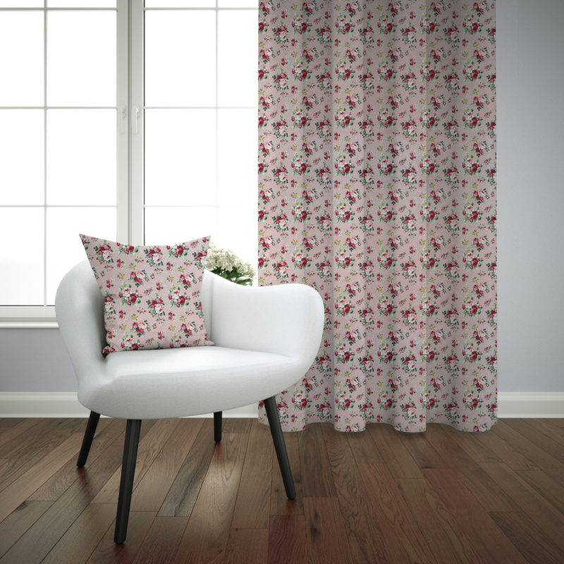 Ervi bavlněný závěs metrážový - růžičky na růžovém