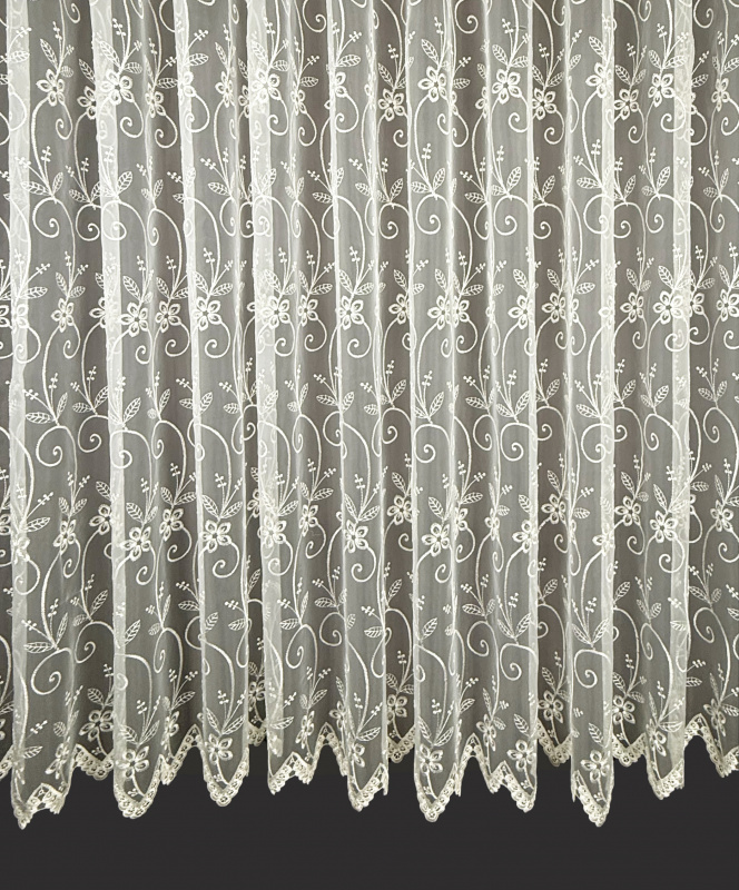 Ervi Luxusní smetanová záclona s výšivkou - Flora Classic, metráž