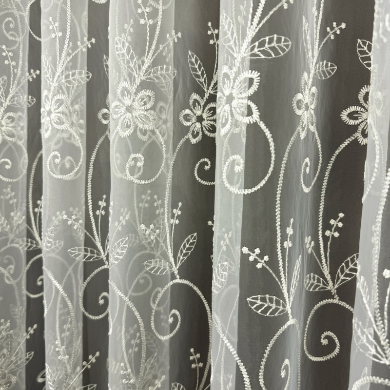Záclona s výšivkou – smetanová je elegantním a dekorativním prvkem do každého interiéru. Jemný průhledný voál doplněný detailní květinovou výšivkou vytváří luxusní a romantický vzhled. Smetanová barva působí teple, harmonicky a snadno se ladí s různými styly vybavení. Díky průsvitnosti propouští dostatek světla, ale zároveň dodává soukromí a příjemnou atmosféru.