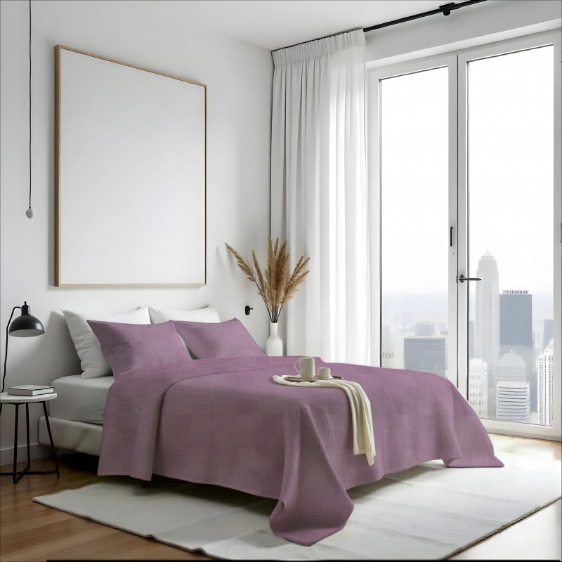 Ervi 100% Bavlněný multifunkční deka-přehoz na postel Waffle - Levandulový