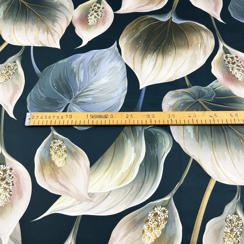 Ervi Bavlněná Satenová látka/plátno š.240cm Exotické listy -53, metráž