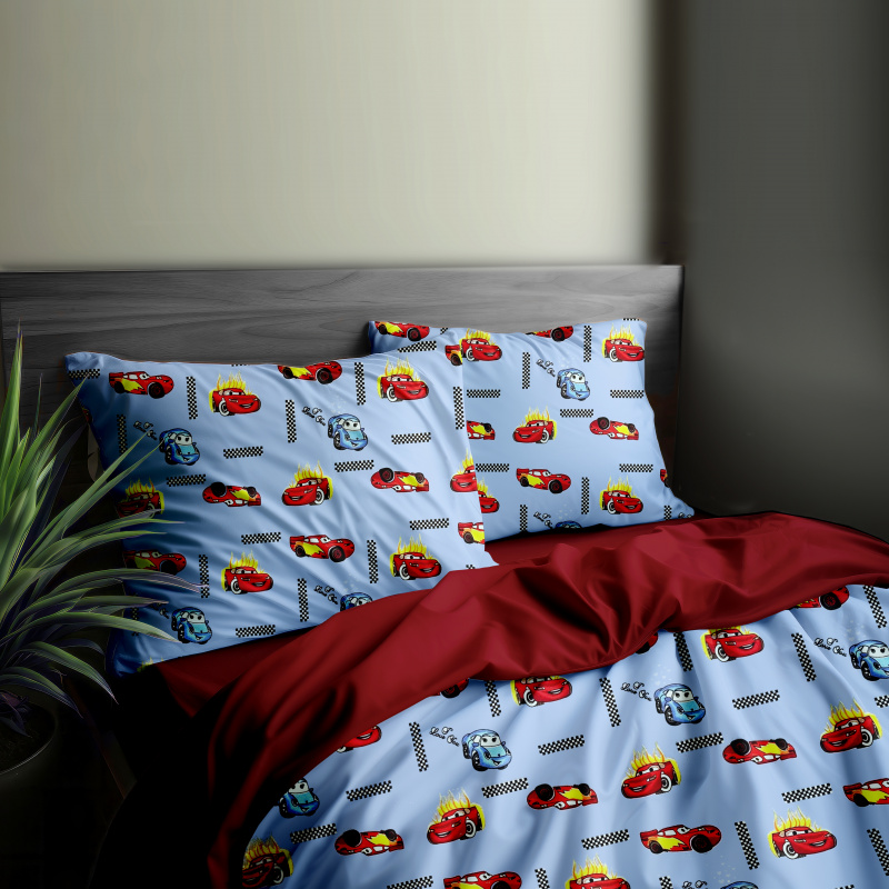 Ervi bavlněné povlečení oboustranné - autíčká na modrém/bordo