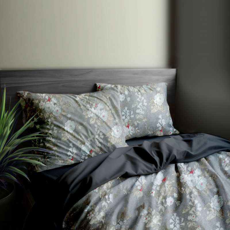 Ervi bavlněné povlečení oboustranné - bílé růže na šedém/černé