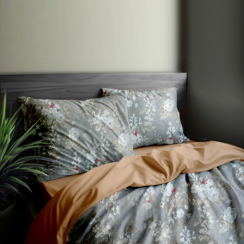 Ervi bavlněné povlečení oboustranné - bílé růže na šedém/hnědo béžový
