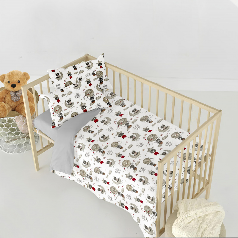 Ervi bavlněné povlečení do postýlky DUO - medvídci a hvězdy/šedé