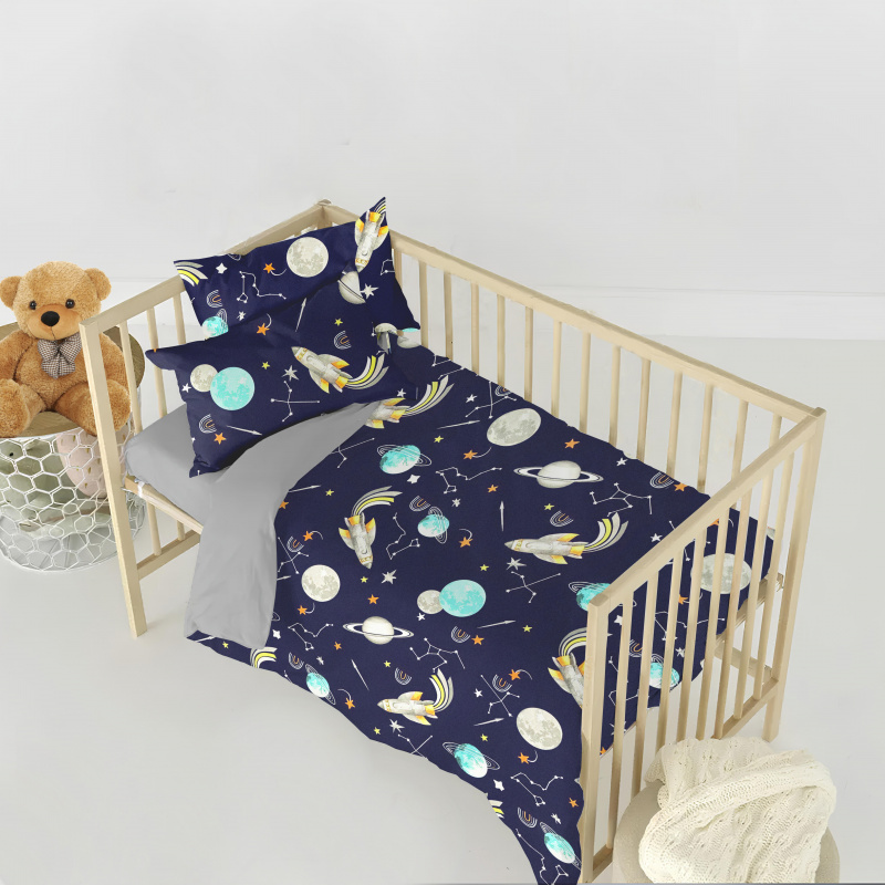 Ervi bavlněné povlečení do postýlky DUO - Vesmírná dobrodružství/šedé