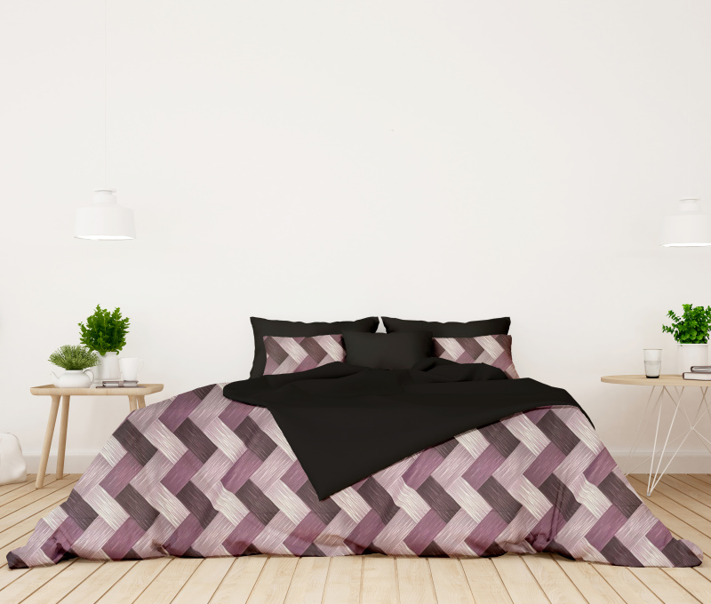 Ervi bavlněné povlečení oboustranné - Dřevodekor fialový/černé