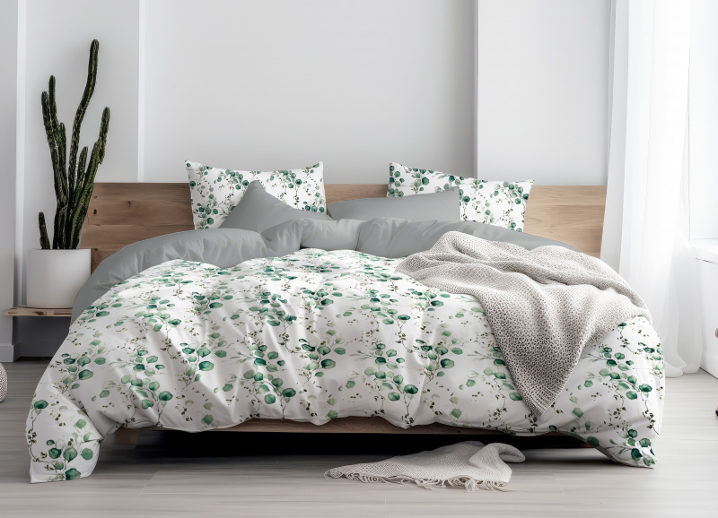 Ervi Bavlněné povlečení oboustranné - Eukalyptový dotek/šedé