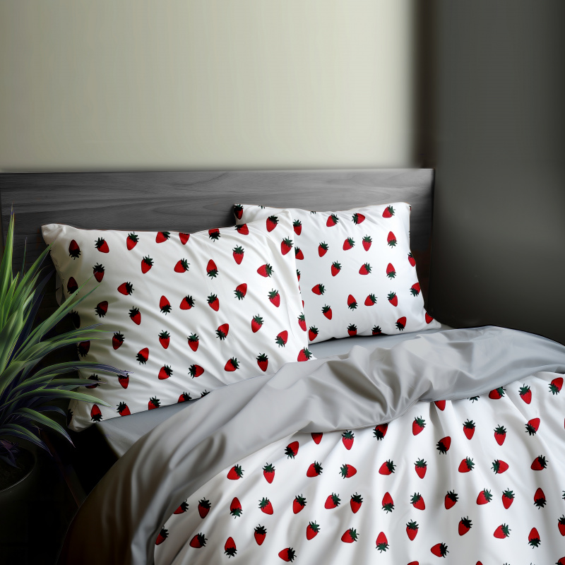 Ervi bavlněné povlečení oboustranné - Jahodové pole/světle šedé