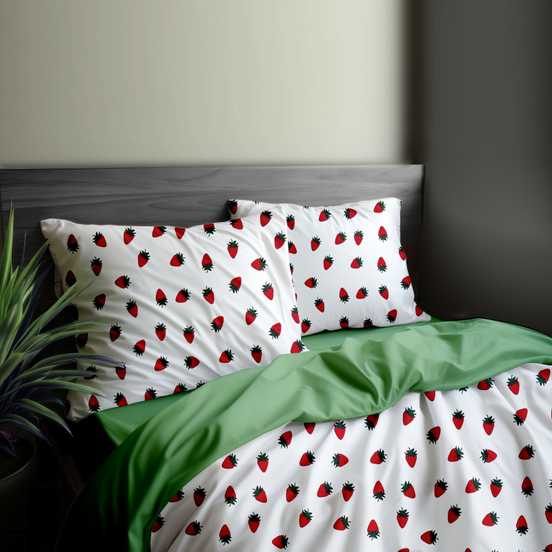 Ervi bavlněné povlečení oboustranné - Jahodové pole/zelené