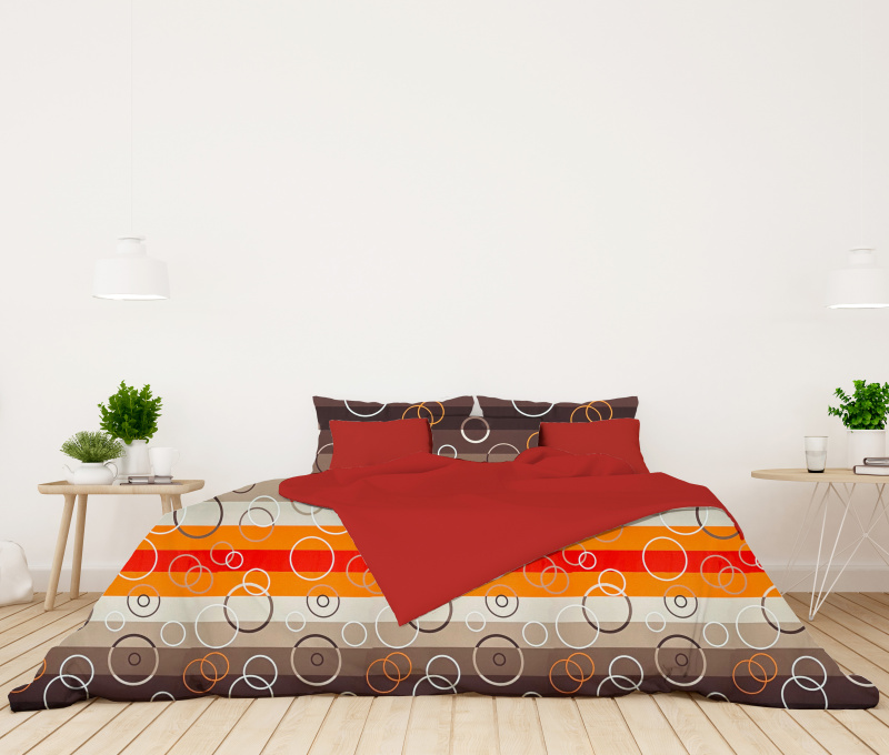 Ervi bavlněné povlečení oboustranné - Kruhy na oranžovém/červené