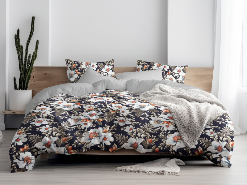 Ervi Bavlněné povlečení oboustranné - Květinový večer/světle šedé