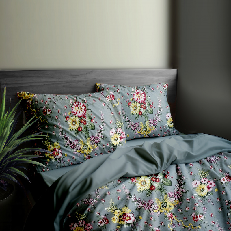 Ervi bavlněné povlečení oboustranné - Kytice na šedém/šedé