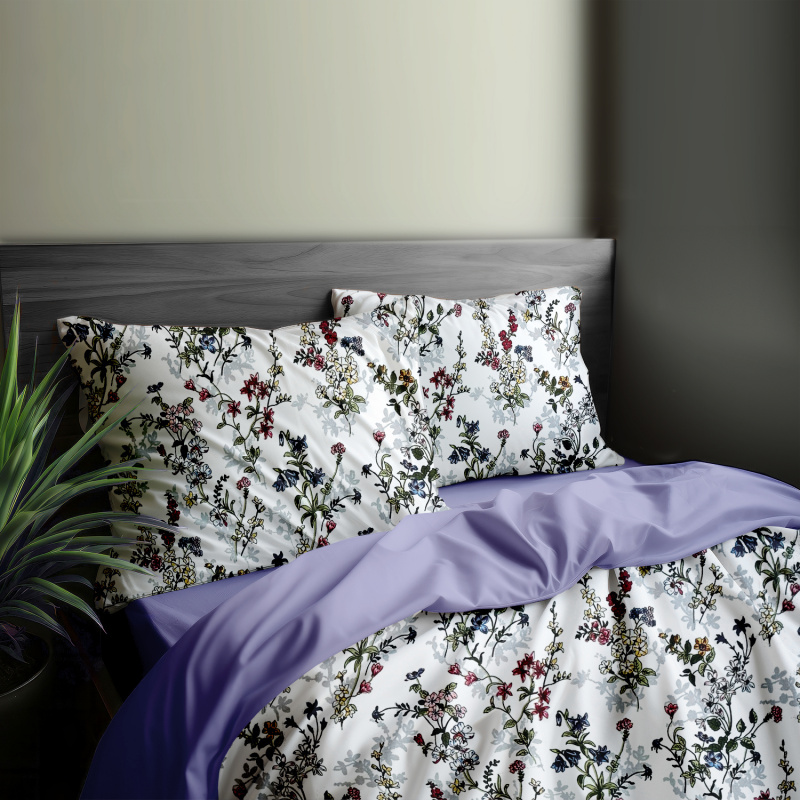 Toto povlečení je vyrobeno z kvalitní bavlny a je oboustranné. Jedna strana je zdobena malovanými lučními květinami na bílém podkladu, zatímco druhá strana je jednobarevná fialová. Sada obsahuje povlak na polštář a přikrývku, které jsou sladěny v tomto designu. Tento produkt je ideální pro ty, kteří chtějí do své ložnice přinést svěžest a přírodní krásu.