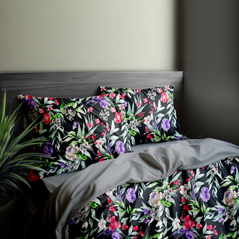 Ervi Bavlněné povlečení oboustranné - Květinová elegance 2/šedé