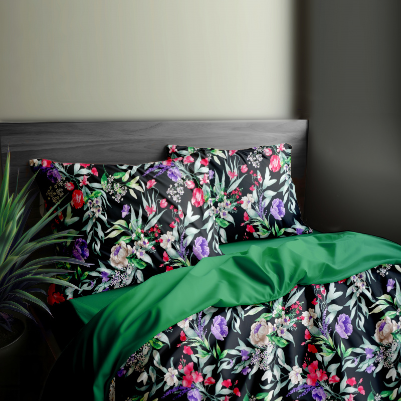 Ervi Bavlněné povlečení oboustranné - Květinová elegance 2/zelené