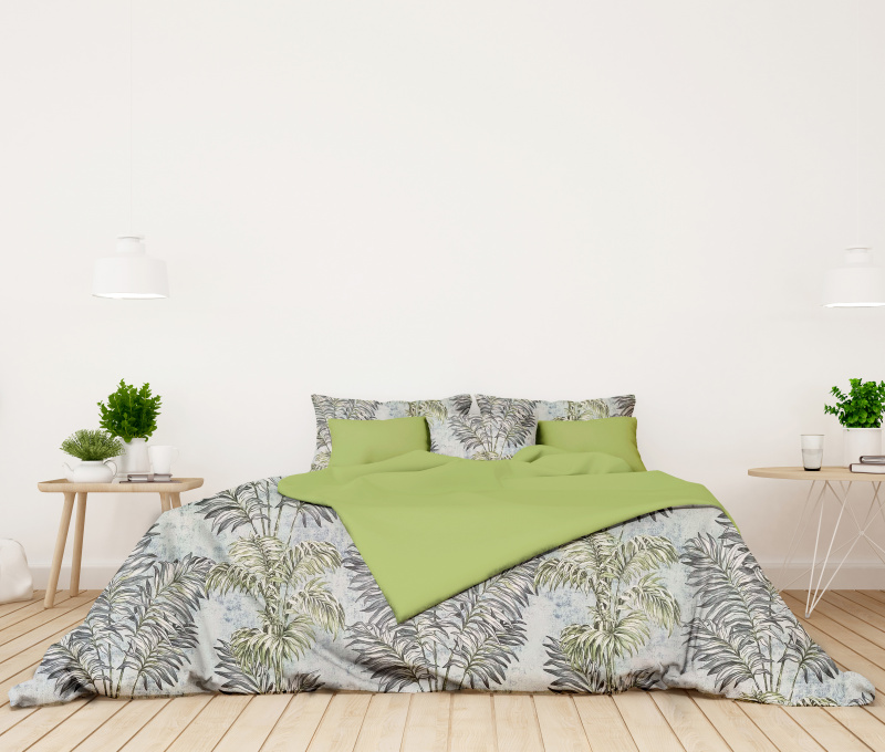 Ervi bavlněné povlečení oboustranné - palmové listy/světle zelený