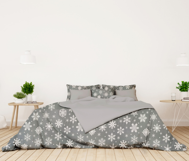 Ervi bavlněné povlečení oboustranné - sněhové vločky na šedém/šedé