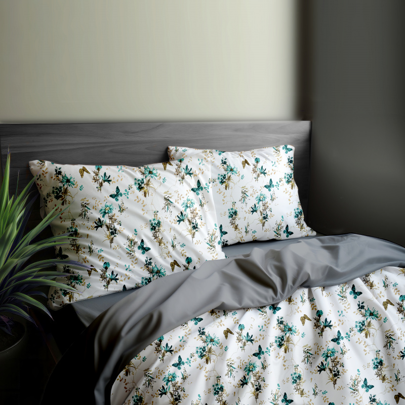 Ervi Bavlněné povlečení oboustranné - Tanec motýlů tyrkysový/šedé