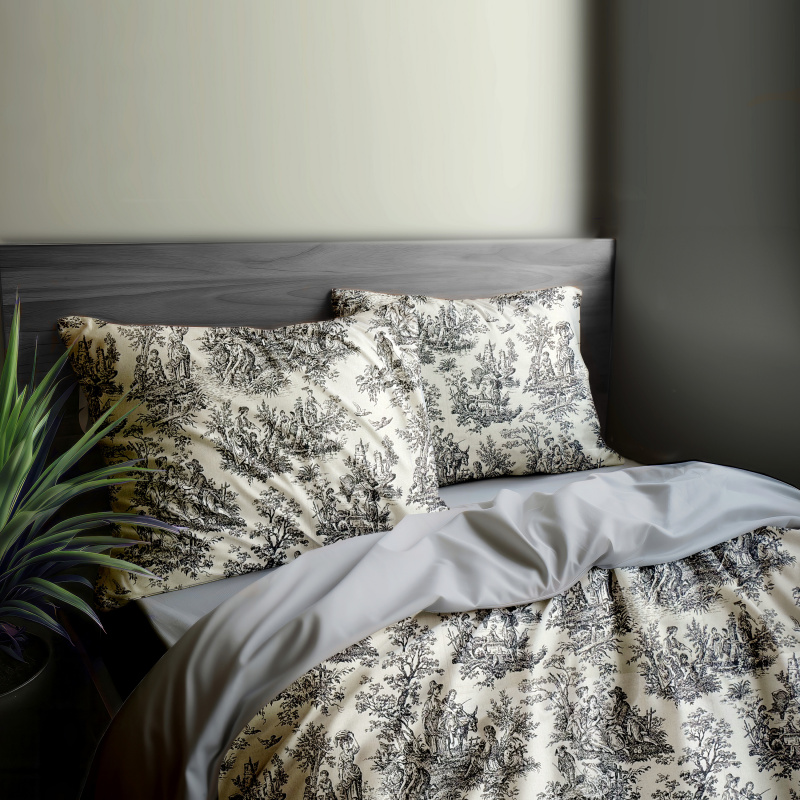Ervi Bavlněné povlečení oboustranné - Toile de Jouy/světle šedý