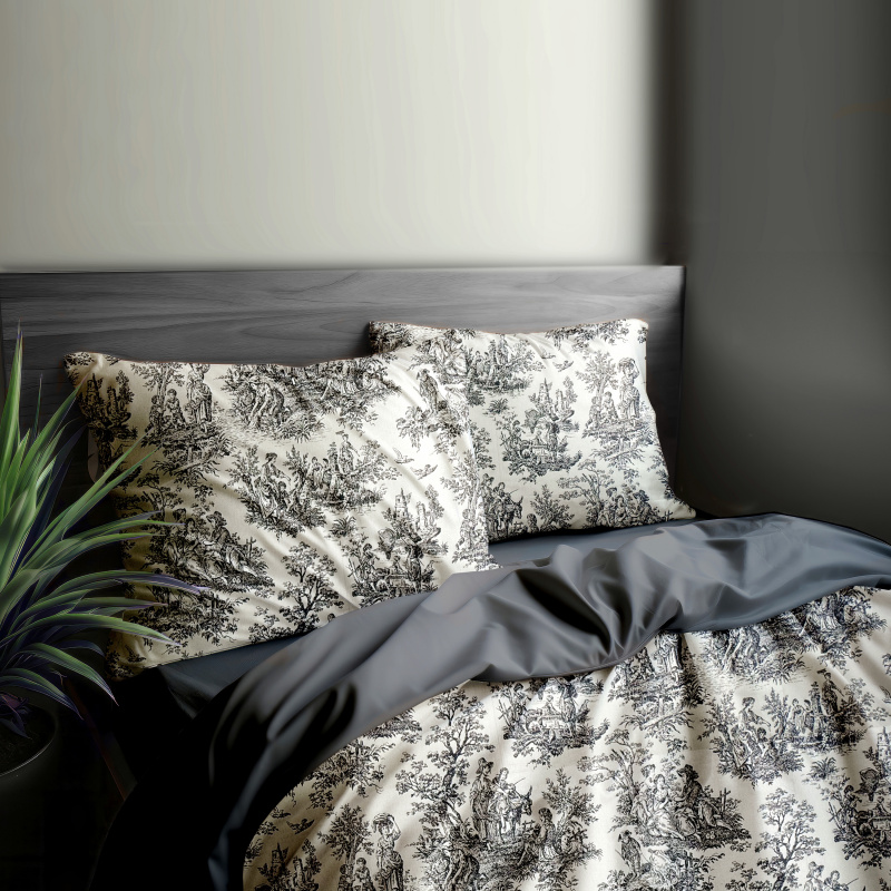 Ervi Bavlněné povlečení oboustranné - Toile de Jouy/světle šedé