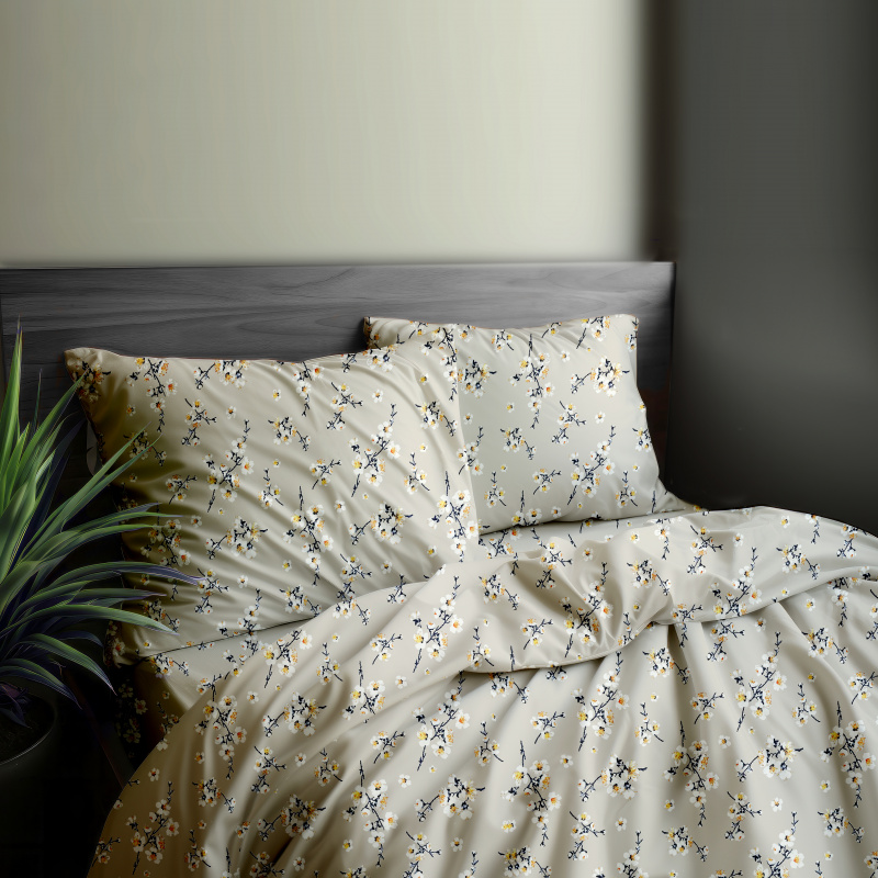 Obklopte se klidem a elegancí přírody s touto nádhernou sadou ložního prádla. Jemný motiv třešňového květu na béžovém podkladu dodá vaší ložnici nádech sofistikované romantiky a pohodlí.