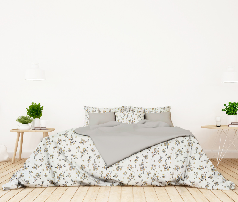 Toto oboustranné bavlněné povlečení přináší do vaší ložnice svěžest a eleganci. Jedna strana povlečení je zdobena jemným vzorem třešňových květů na bílém podkladu, zatímco druhá strana je jednobarevná šedá. Tento design umožňuje snadnou změnu vzhledu vaší postele podle nálady. Povlečení je vyrobeno z kvalitní bavlny, která zajišťuje pohodlí a dlouhou životnost.
