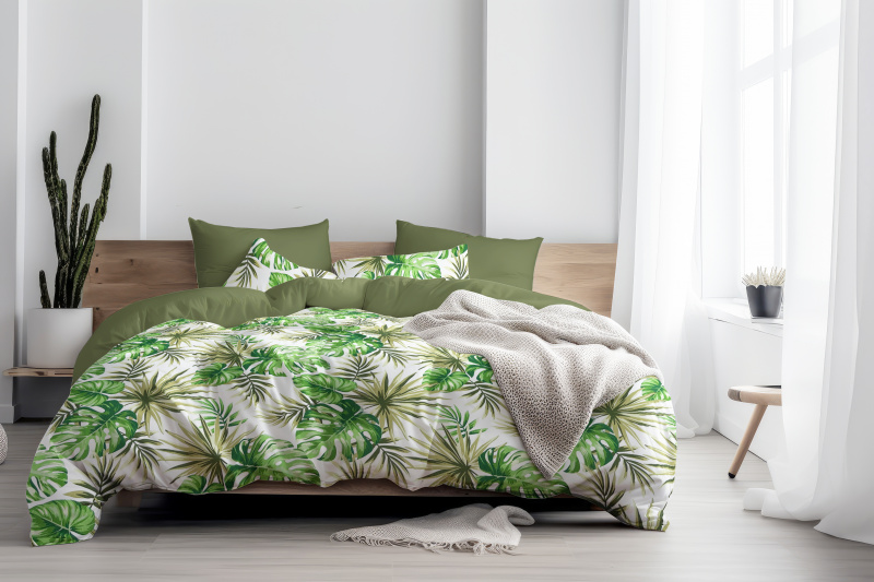 Ervi bavlněné povlečení oboustranné - Monstera zelená/olivové