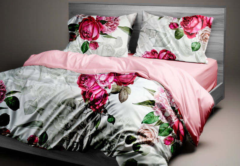 Ervi Bavlněné Saténové povlečení DELUXE DUO - Růžové růže a pivoňky/růžové