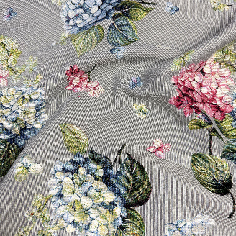 Ervi Gobelínový přehoz na křeslo - Hortenzie na šedém