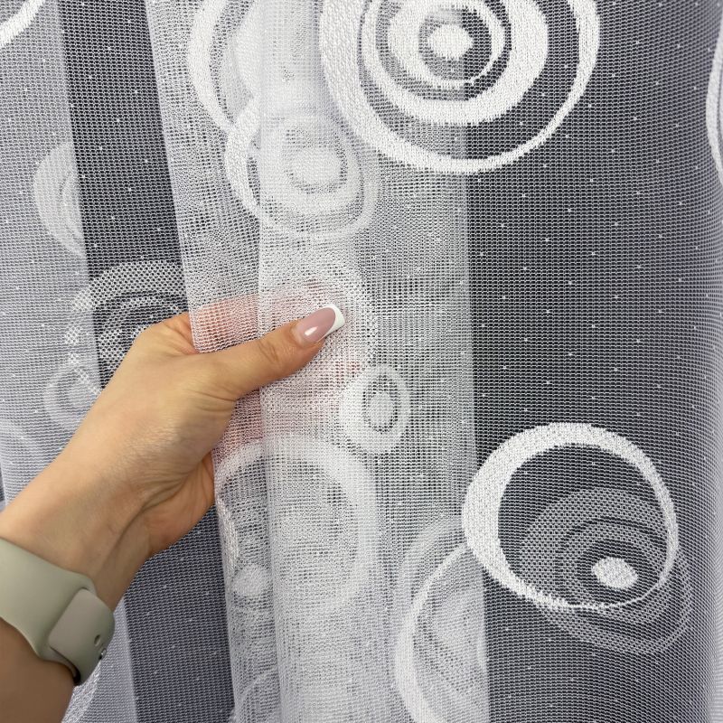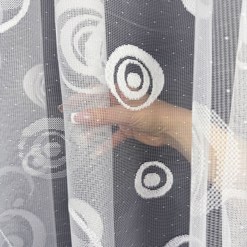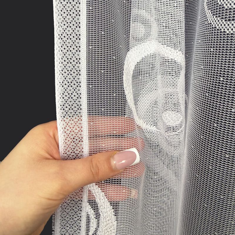 U záclon zakončené boční a horní okraje. Ihned k zavěšení na žabky nebo háčky.