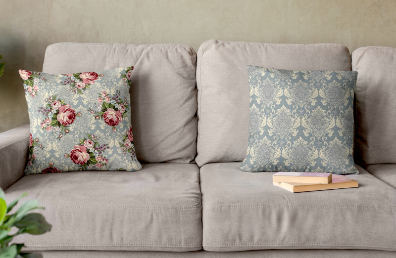 Ervi povlak na polštář Gobelínový - Květinová symfonie na šedo-modrém