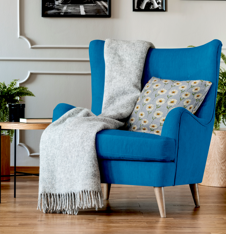 Ervi povlak na polštář Gobelínový - Romantické kopretiny na modrém