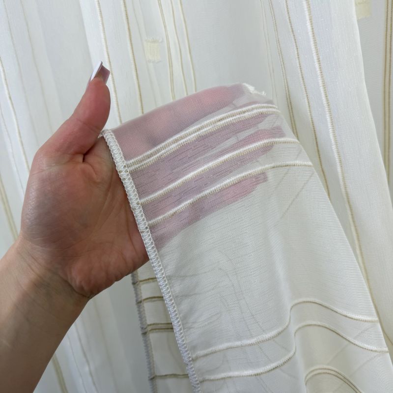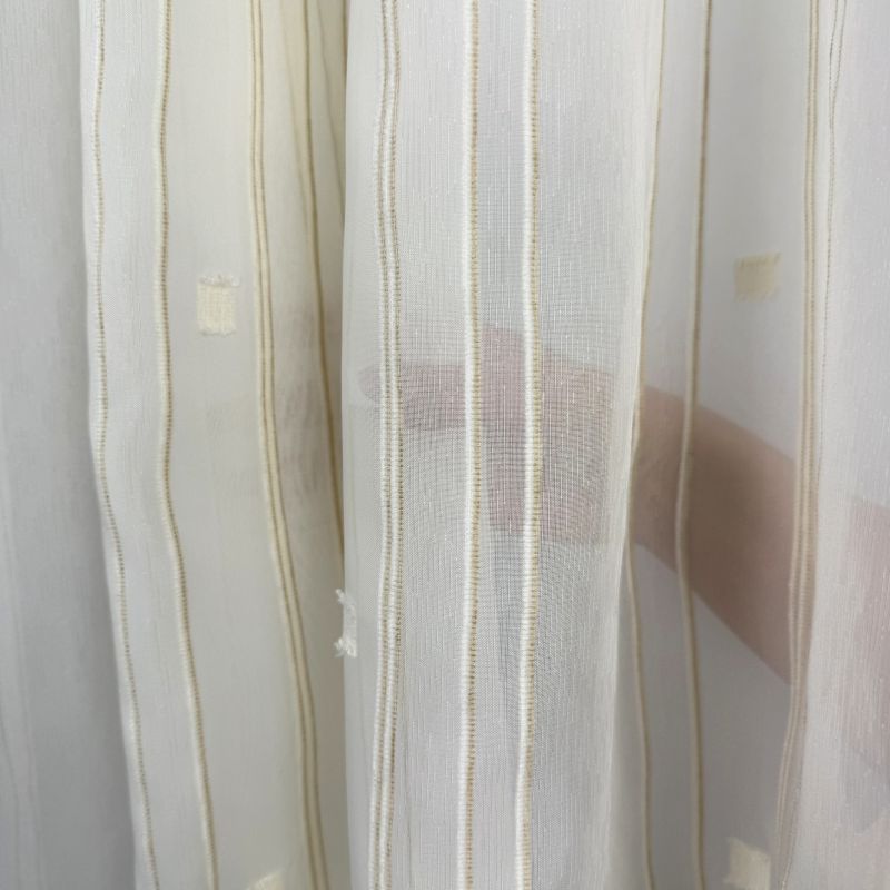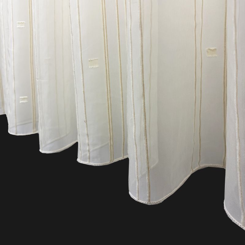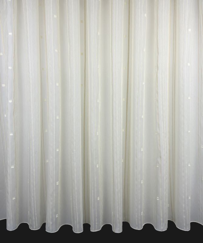 Voálová záclona v bílé smetanové s kostičkami a nití s olůvkem.