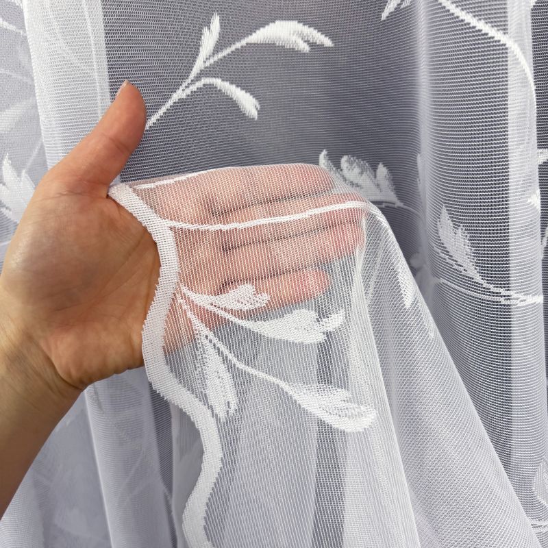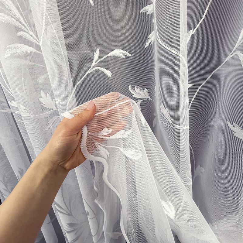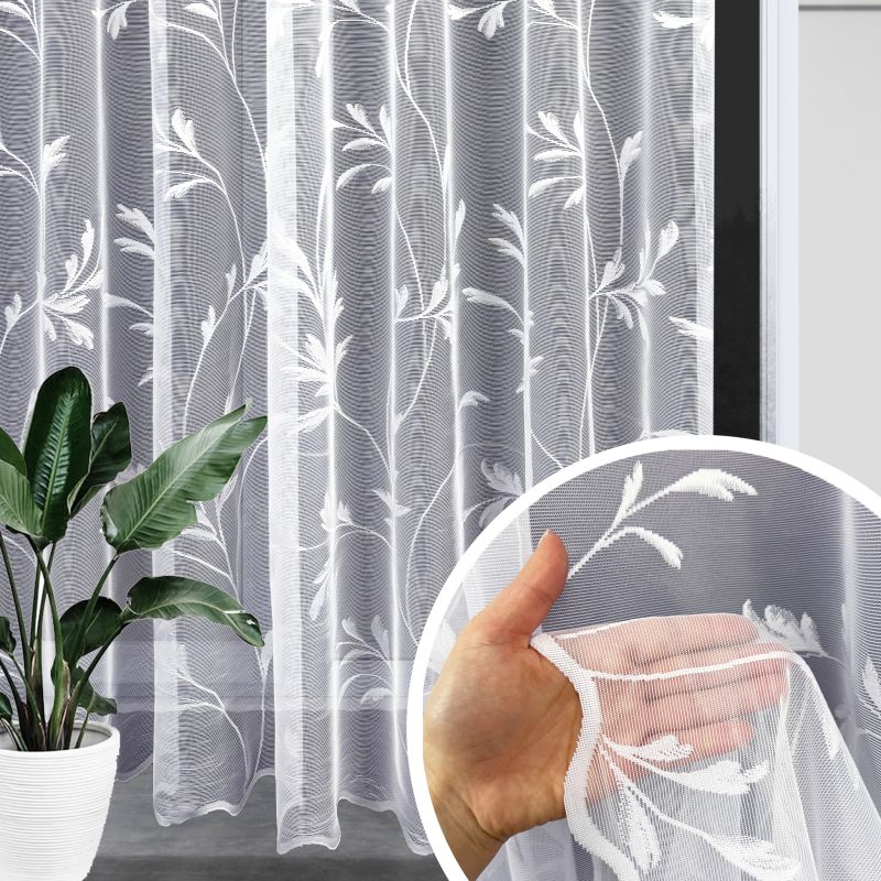Ervi žakárová záclona v bílé barvě se vzorem.