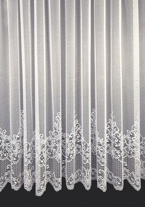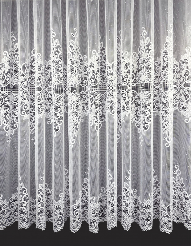 Záclona do výšky 180 cm má jednu zdobenou borduru, od výšky 190 cm a více dvě zdobené bordury.