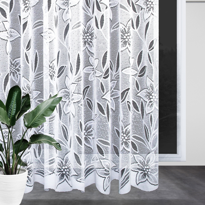 Zdobená žakárová záclona v bílé barvě