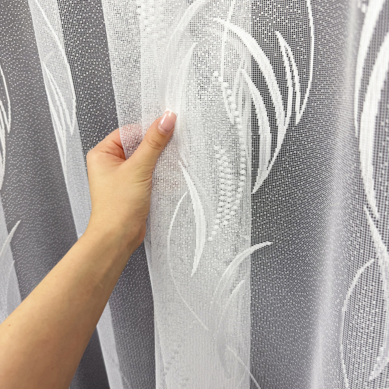 Ervi žakárová záclona v bílé barvě se vzorem.