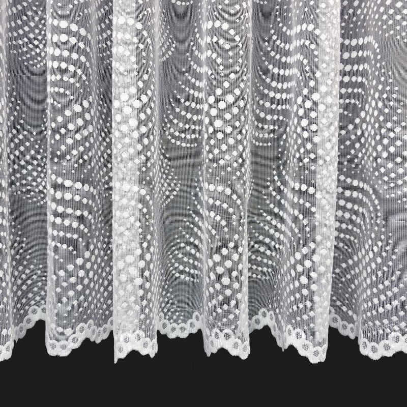 Žakárová záclona bílá 7182, metráž, je vyrobena z jemného bílého žakárového materiálu. Tato záclona má elegantní a moderní vzor tvořený drobnými tečkami a vlnkami, který dodává interiéru svěžest a lehkost. Okraje záclony jsou zakončeny ozdobným lemem, který přidává na estetické hodnotě. Záclona je ideální pro použití v různých interiérech, jako jsou obývací pokoj, ložnice, kuchyně nebo kancelář. Dostupná je v metráži, což umožňuje přizpůsobení délky podle potřeby zákazníka.