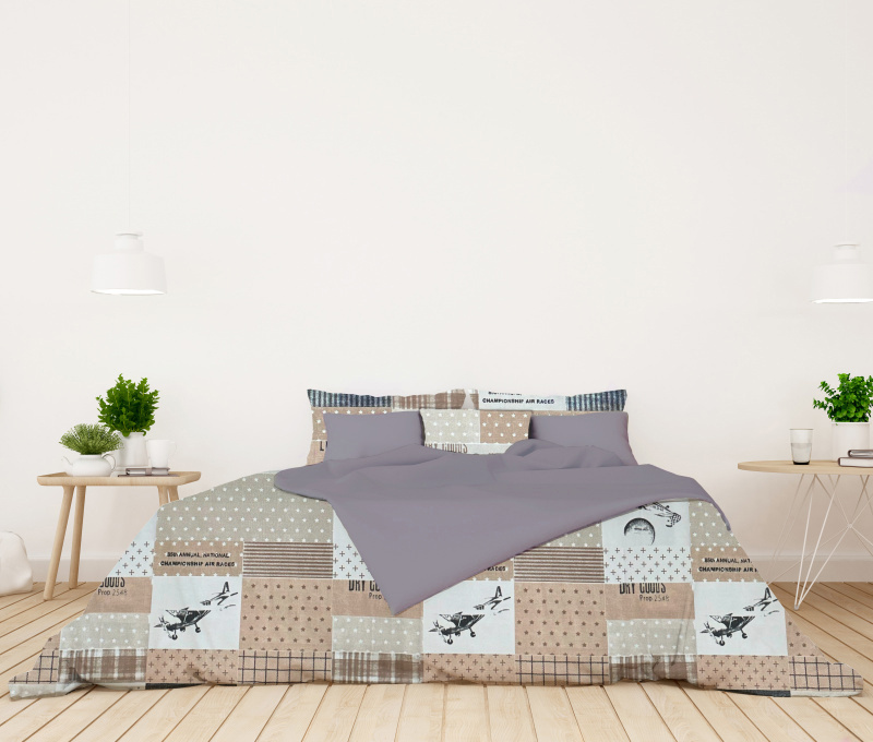 Ervi Zvýhodněná Sada Bavlněného DUO povlečení s Prostěradlem - Air races beige/šedé