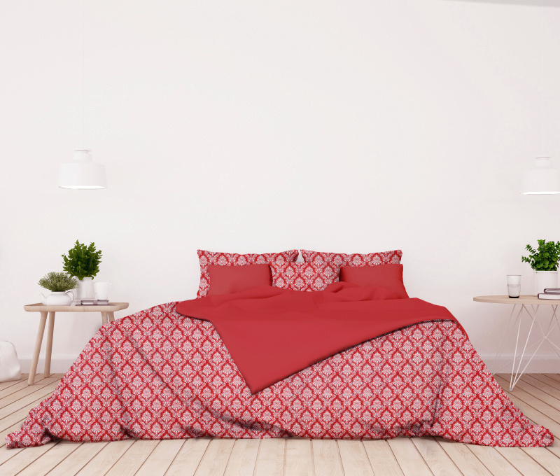 Ervi Zvýhodněná Sada Bavlněného DUO povlečení s Prostěradlem - Zámecký vzor červený/červená