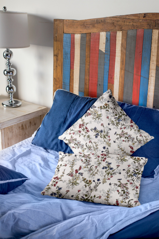 Ervi povlak na polštář Bavlněný - malované luční květiny na bílém 2