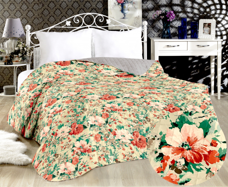 Přehoz oboustranný Colore - Květy /šedý