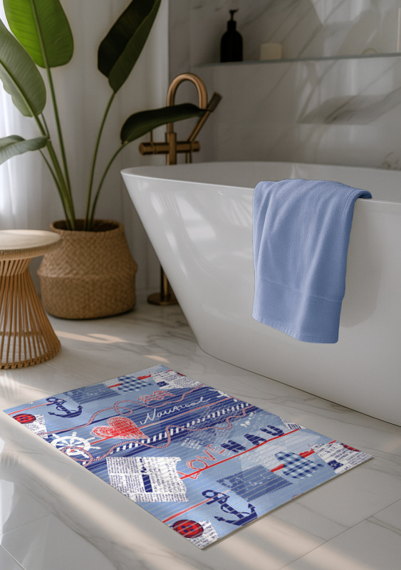 Pěnová podlahová PVC předložka se vzorem. Má protiskluzovou úpravou.