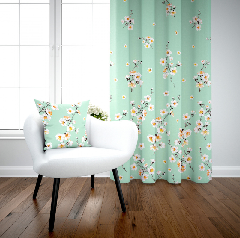 Ervi bavlněný závěs metrážový - květ jabloně na zeleném