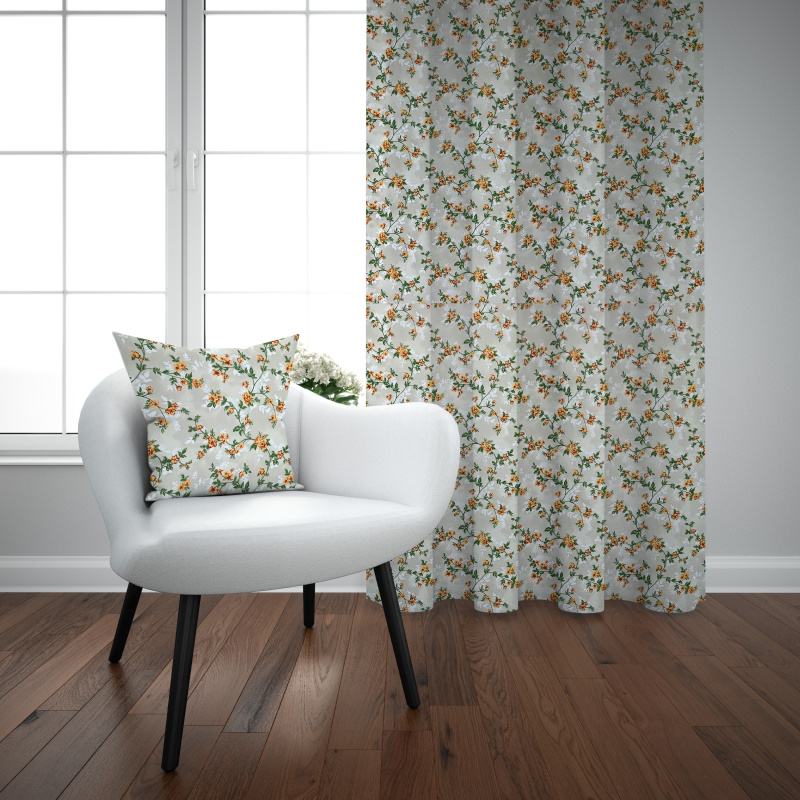 Ervi Bavlněný závěs - romantické růže na béžovém