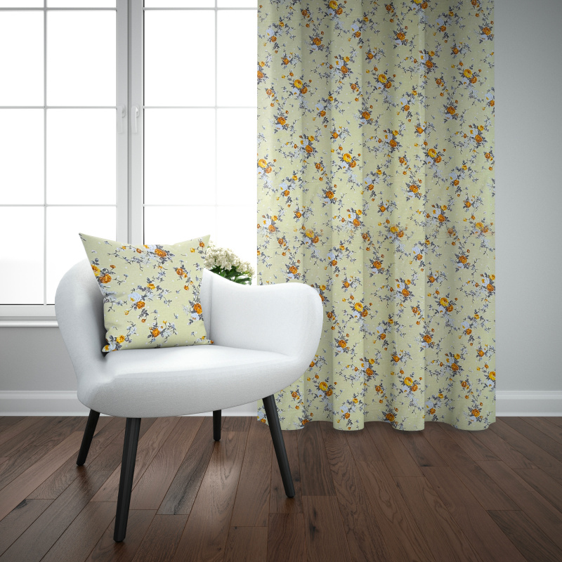 Ervi Bavlněný závěs - Žlutá Růžová Zahrada