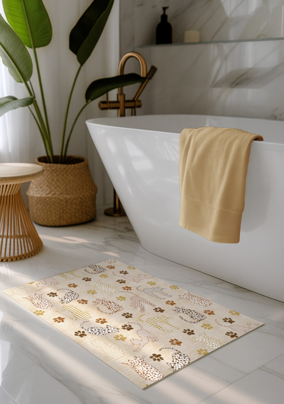 Pěnová podlahová PVC předložka se vzorem. Má protiskluzovou úpravou.