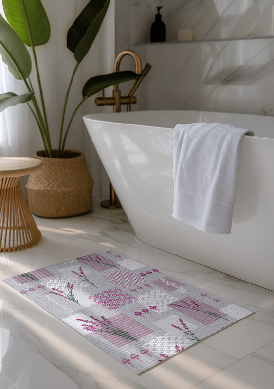 Pěnová podlahová PVC předložka se vzorem. Má protiskluzovou úpravou.